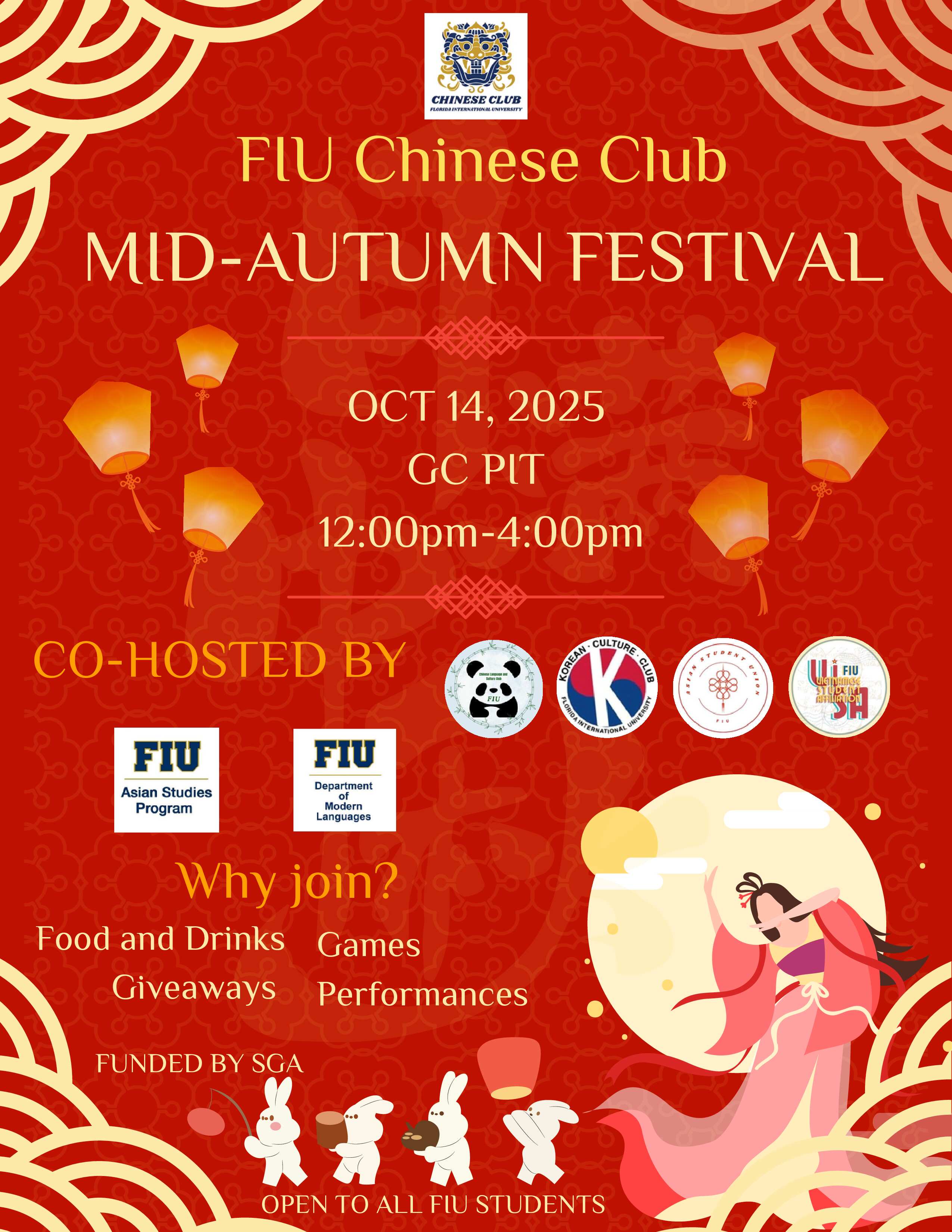Presented by the FIU Chinese Club, Asian Studies Program, and the Department of Modern Languages, as well as other student-led organizations including Japanese, Korean and Vietnamese Clubs