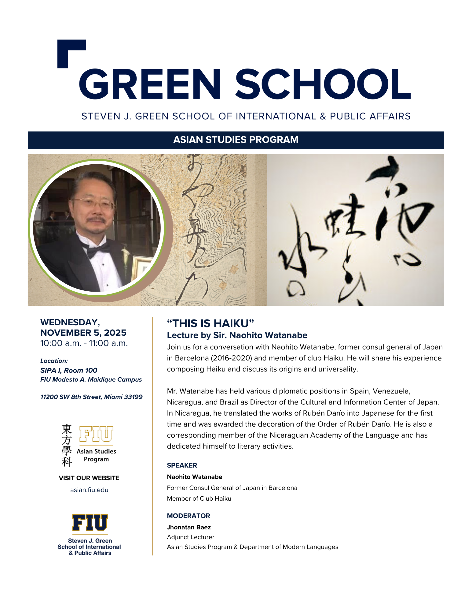 Moderated by Dr. Steven Heine, Professor and Director of Asian Studies. For questions, please email asian@fiu.edu.